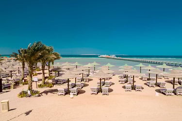 Seguimos viagem até Hurghada, onde o cenário muda completamente. Tempo livre para relaxar diante das águas cristalinas do Mar Vermelho e aproveitar um fim de dia leve, com clima de paraíso.