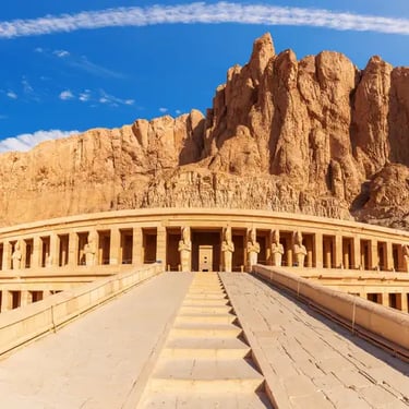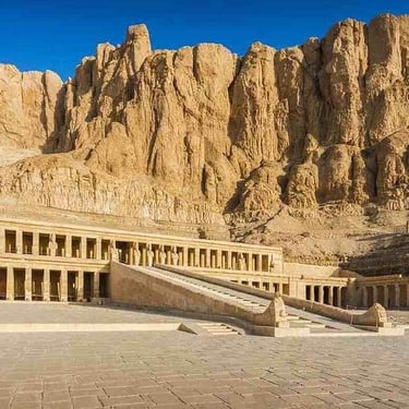 Dia 6 — Templos e Tesouros do Egito Antigo Um mergulho profundo na grandiosidade do Egito Antigo: Vale dos Reis, Templo da Rainha Hatshepsut, Colossos de Memnon, além dos impressionantes templos de Luxor e Karnak. À noite, viagem de retorno ao Cairo.