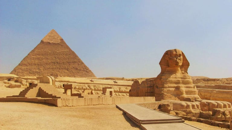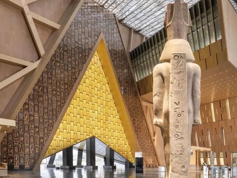 Dia 2 — Pirâmides Grande Museu do Egito Um dos dias mais aguardados: visita às icônicas Pirâmides de Gizé e à Esfinge, símbolos de uma das civilizações mais impressionantes da história. À tarde, exploramos o novo Grande Museu do Egito, mergulhando ainda mais fundo no legado milenar do país.