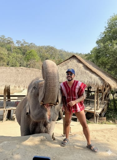 Visita a um santuário de elefantes e subida até o famoso templo Doi Suthep, com vista incrível da região.