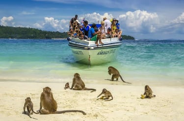 Passeio de barco pelas águas cristalinas de Koh Phi Phi, com paradas em praias paradisíacas e paisagens inesquecíveis.